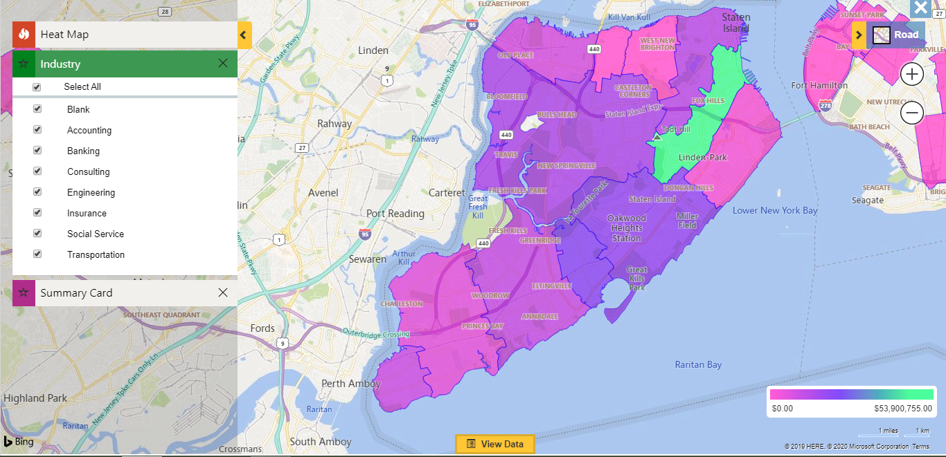 Let’s understand the concept of Heat Maps with the help of a use case. IKL Enterprises is a huge MNC that deals with B2B clients. The clients in return deal with B2C audience. Therefore, Sam from IKL Enterprises wants to visualize how the various industries of his businesses are performing in Staten Island and how the revenue is generated. In order to visualize the data for revenue, they use Maplytics. With Maplytics they plot data with boundary based on postal code and analyze how the business is performing as per different Industries. Maplytics is a trustworthy source since it is Certified by Microsoft Dynamics (CfMD) and is a Preferred Solution on Microsoft AppSource for Dynamics 365 CRM and PowerApps users.